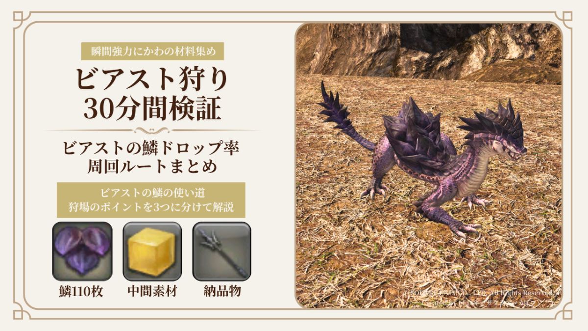【FF14】ビアストの鱗30分で110枚|瞬間強力にかわ材料集め狩り検証