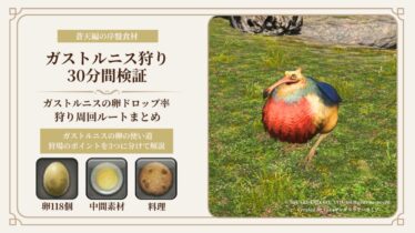 エッグロワイヤル作りに欠かせない「オーケアニスの卵」は、狩りをするとどれくらい集められるのか?そんな疑問を解決するため、ドロップ率を調査してきました!卵を効率よく集める周回ルートを紹介しているので、参考にしてください!