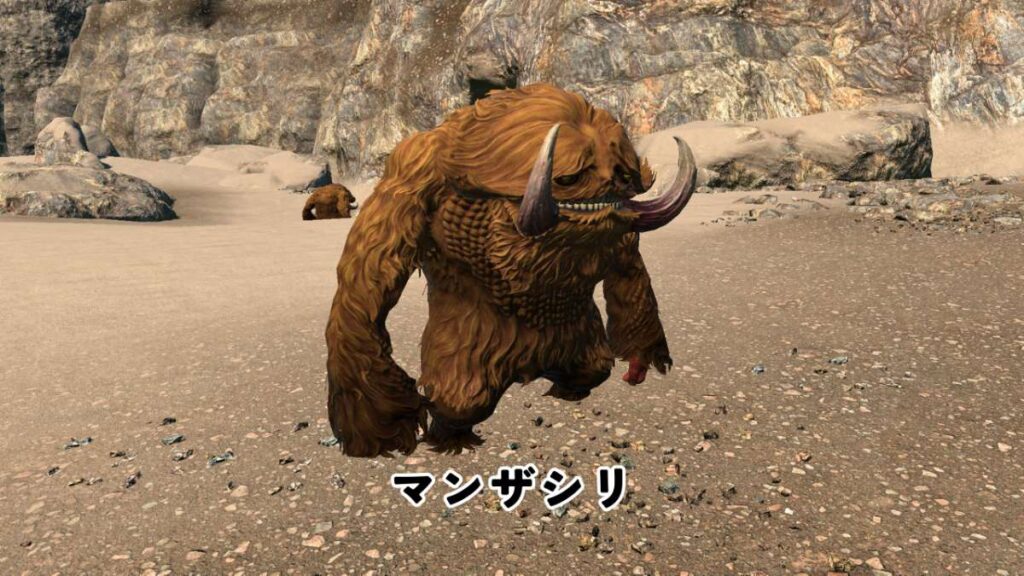 マンザシリの毛をドロップするモブは、クガネエリアに生息しています。