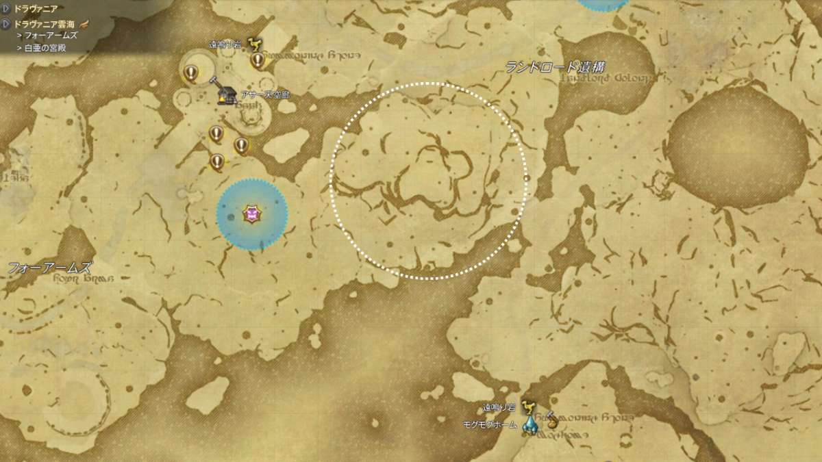 | 検証場所 | ドラヴァニア雲海 ランロード遺構付近 (X:25.5 Y:28.4) 最寄りのテレポ先 モグモグホーム |