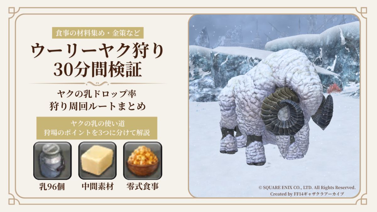 【FF14】ヤクの乳はどこ?30分で96個集める効率ルートとドロップ率検証